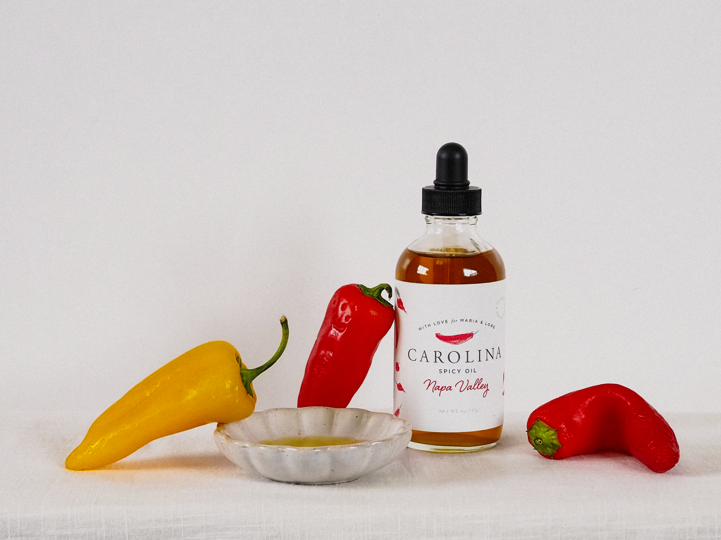 After relocating to Napa Valley, Carolina continued the tradition, bringing back her family’s beloved spicy oil to elevate her favorite dishes. Today, she is delighted to recreate this exceptional oil infused with spicy peppers that are sourced from local farmers.